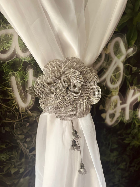 Prendedor Cortina 1 Flor - Par Cinza Claro