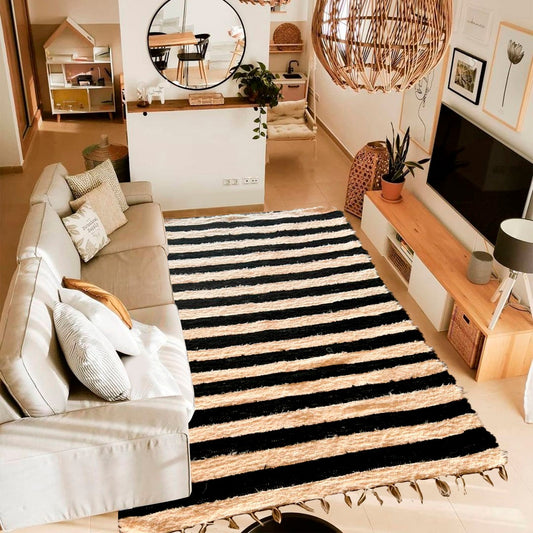 Tapete Algodão Felpudo Preto Listrado 40x60