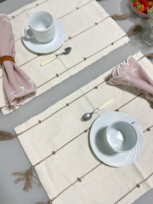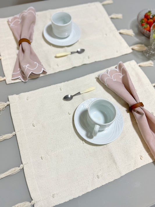 Manta para Sofá / Peseira Lisa Cru com Pompom Terracota Boho 1,20mx1,80m