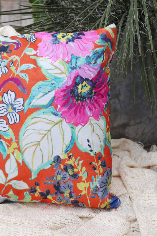 Capa de Almofada Suede Estampada Flores Colorida 45x45cm