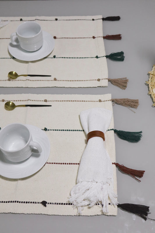 Lugar Americano Algodão com Pompom Bege, Terra, Verde e Marrom