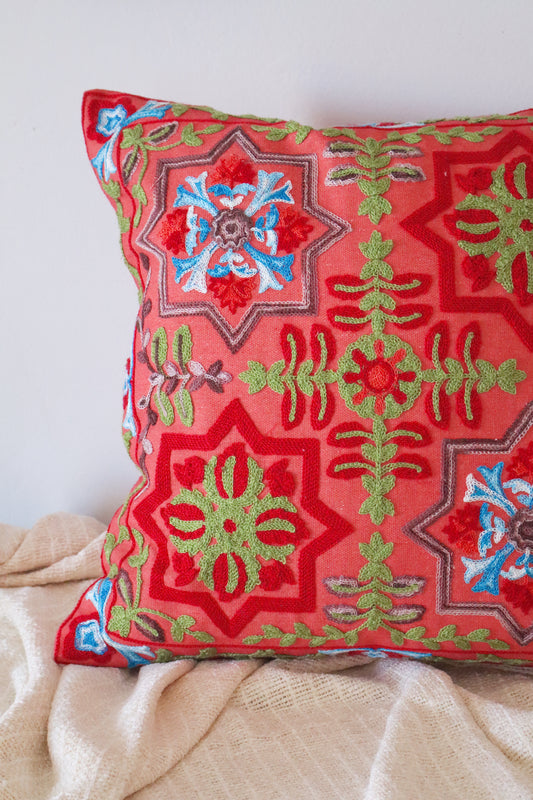 Capa de Almofada Bordada em Linho 45x45 Terra, Mostarda, Verde e Azul