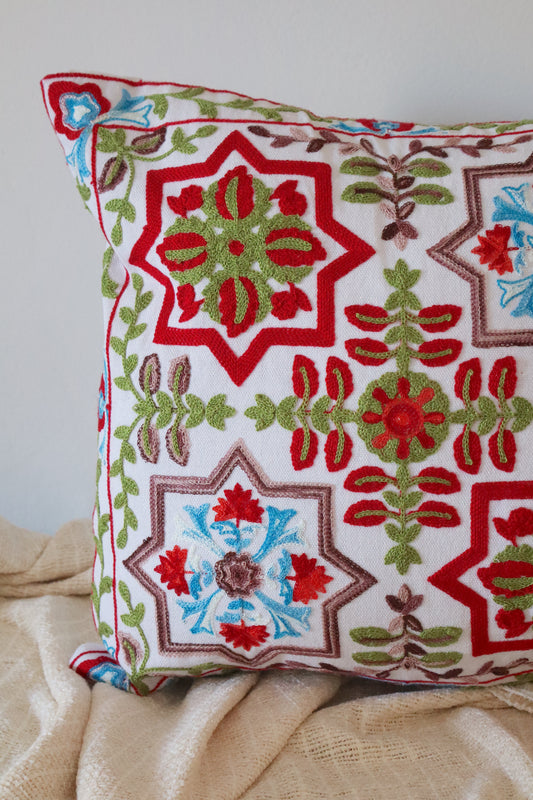 Capa de Almofada Bordada em Linho Floral Boho 45x45 EST05