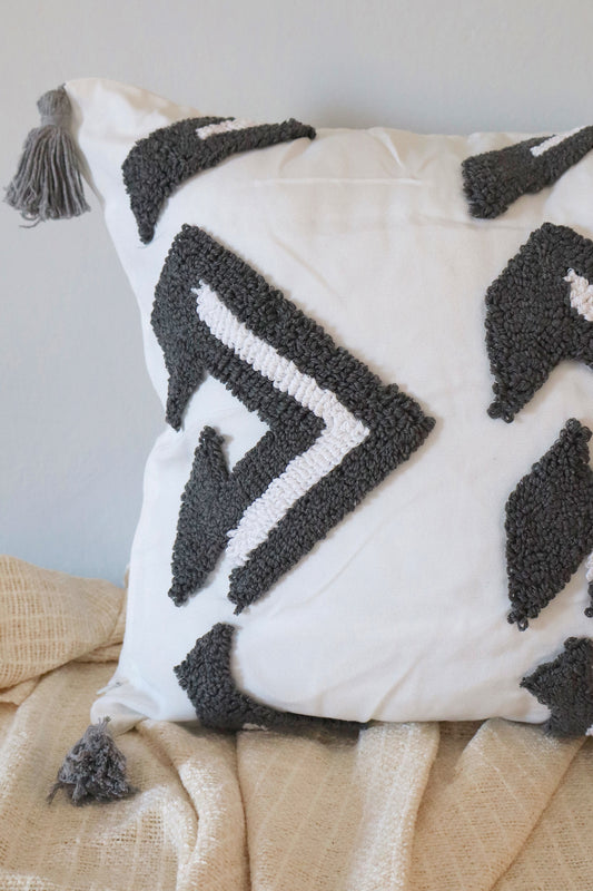 Capa de Almofada Bordada em Linho Tufada Boho 45x45 EST06