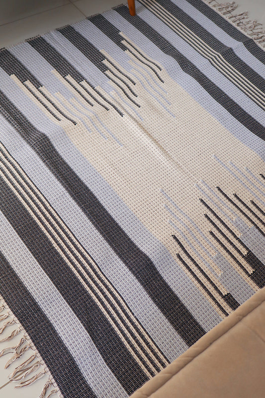 Tapete de Bico Linha Preto e Cinza 1,50x1,50m com Franja