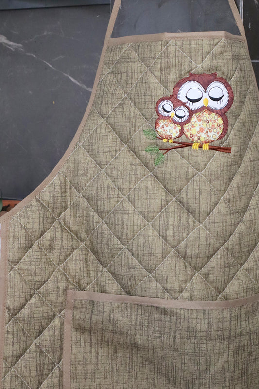 Avental de Cozinha Plastificado Especial Corujas Bege
