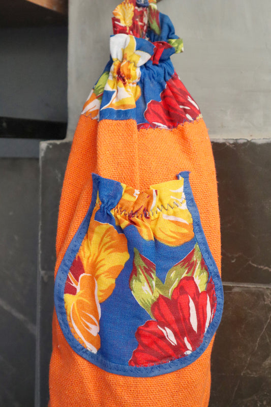 Puxa Saco Bolso Laranja com Chita Azul
