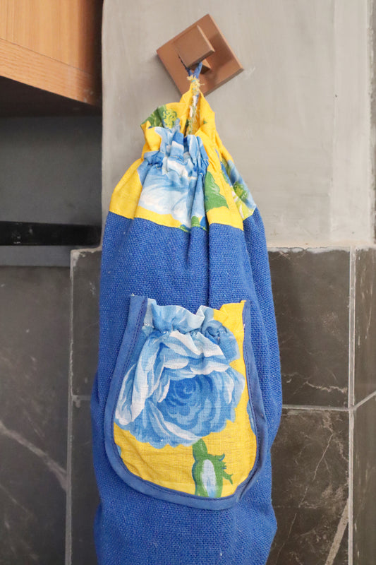 Puxa Saco Bolso Azul com Chita Amarela
