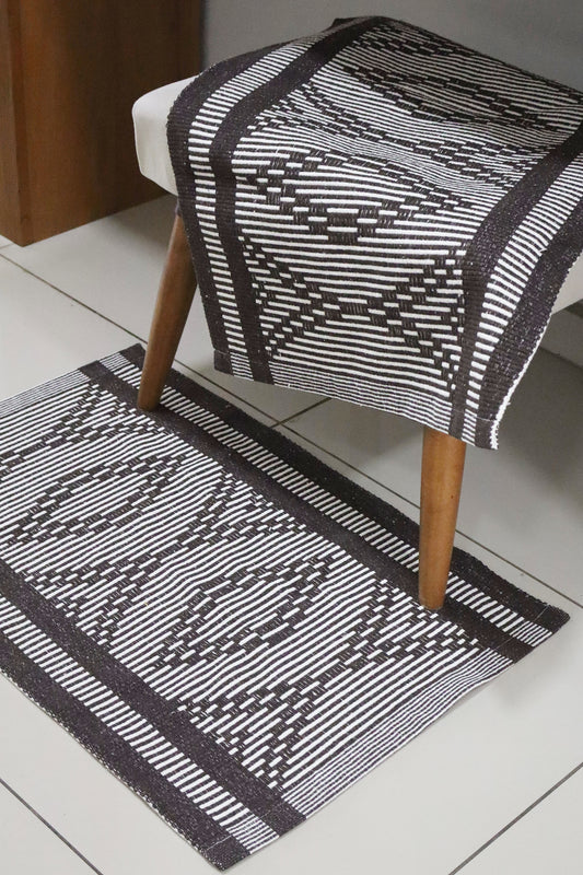 Tapete Médio Algodão Puxadinho Pompom Preto 0,80x1,50m