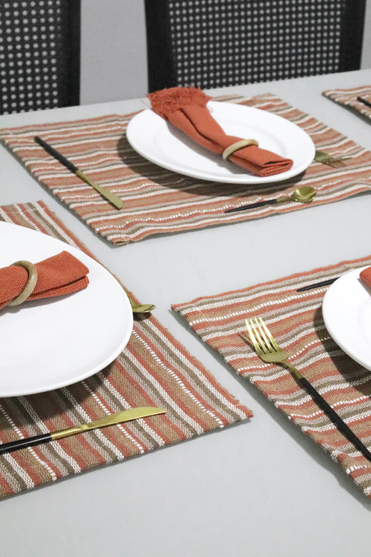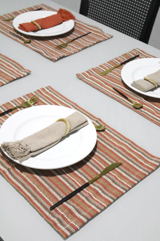Kit De Jogo Americano, Guardanapo e Argola 4 lugares Terracota e Bege
