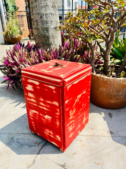 Lixeira Madeira Marroquina Quadrada Vermelha M