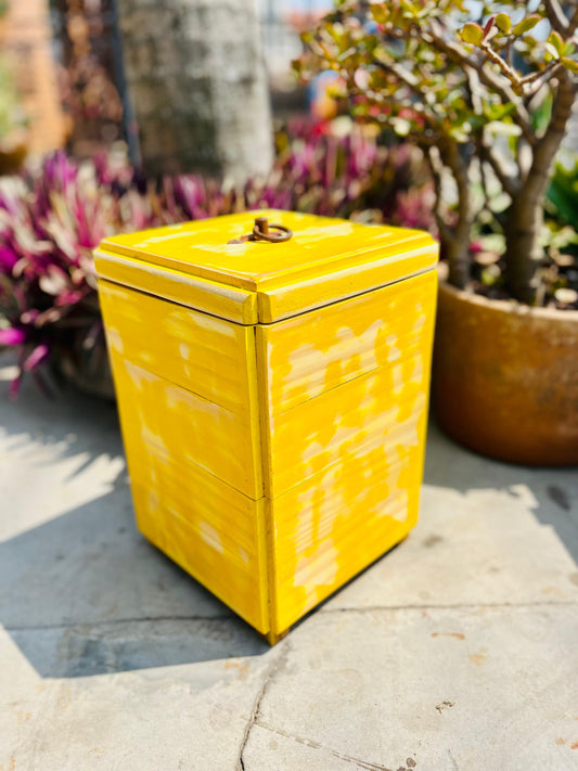 Lixeira Madeira Marroquina Quadrada Amarela P