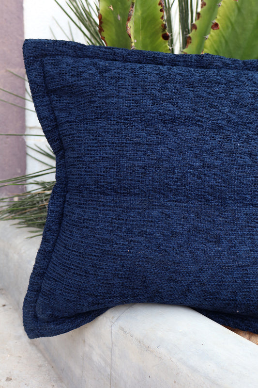 Capa de Almofada em Chenille com Aba Lateral Azul Escuro 45x45