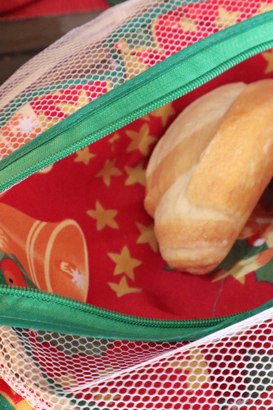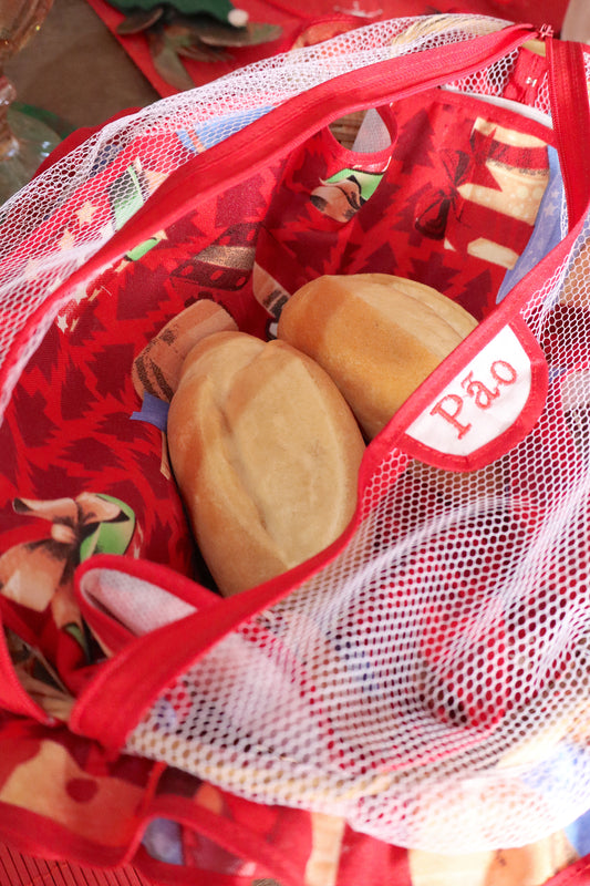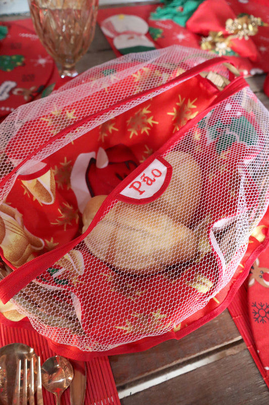 Cesta Porta Pão Bambu com Zíper Natal Vermelha e Verde