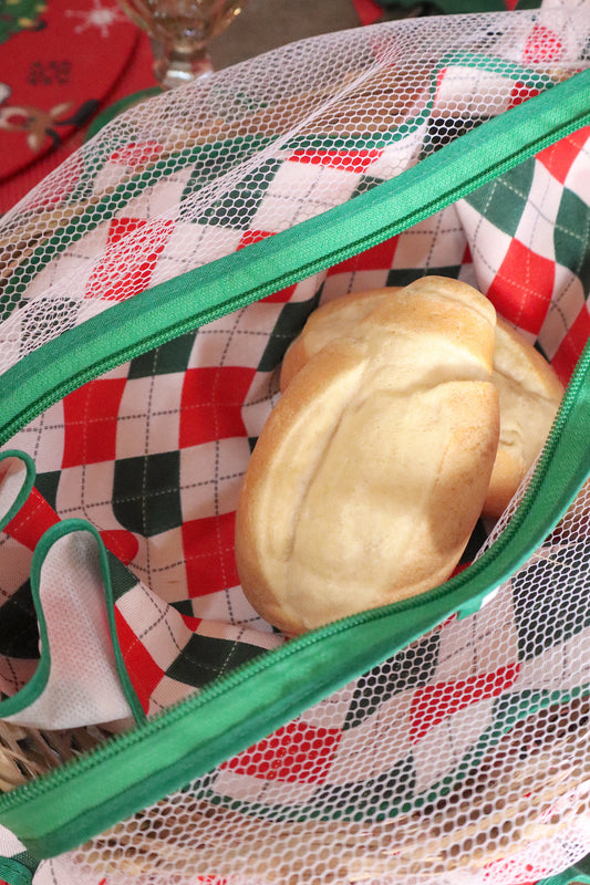 Cesta Porta Pão Bambu com Zíper Natal Xadrez Vermelha e Verde