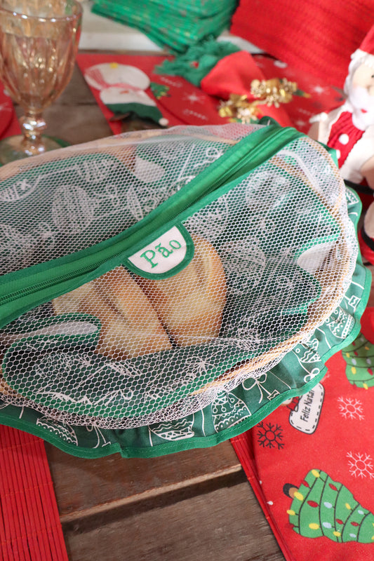 Cesta Porta Pão Bambu com Zíper Natal Verde
