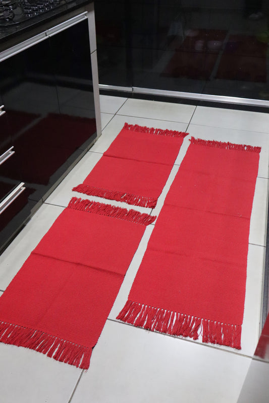 Jogo de Passadeira Linha Liso com Franja Vermelho