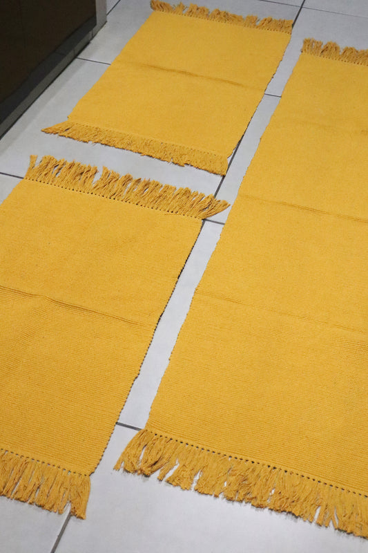 Jogo de Passadeira Linha Liso com Franja Mostarda