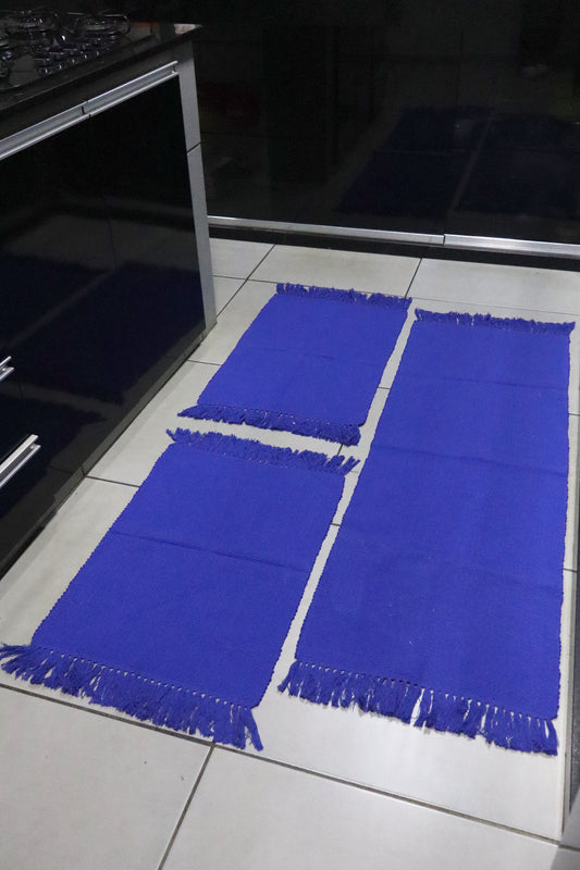 Jogo de Passadeira Linha Liso com Franja Azul Caneta