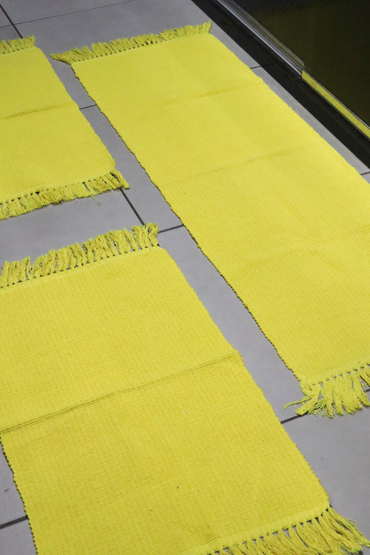 Jogo de Passadeira Linha Liso com Franja Amarelo