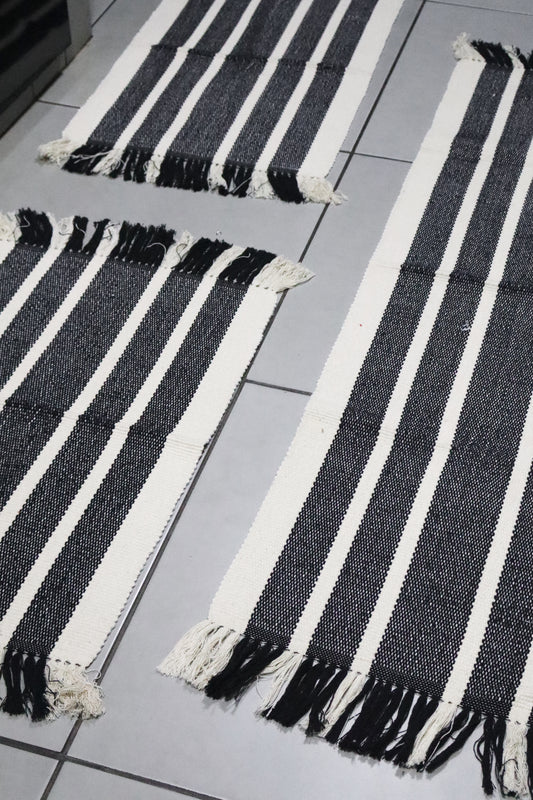 Jogo de Passadeira Linha Listrado com Franja Cru e Preto