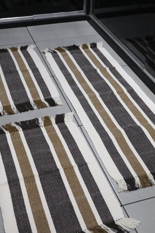Jogo de Passadeira Linha Listrado com Franja Cru, Bege e Marrom