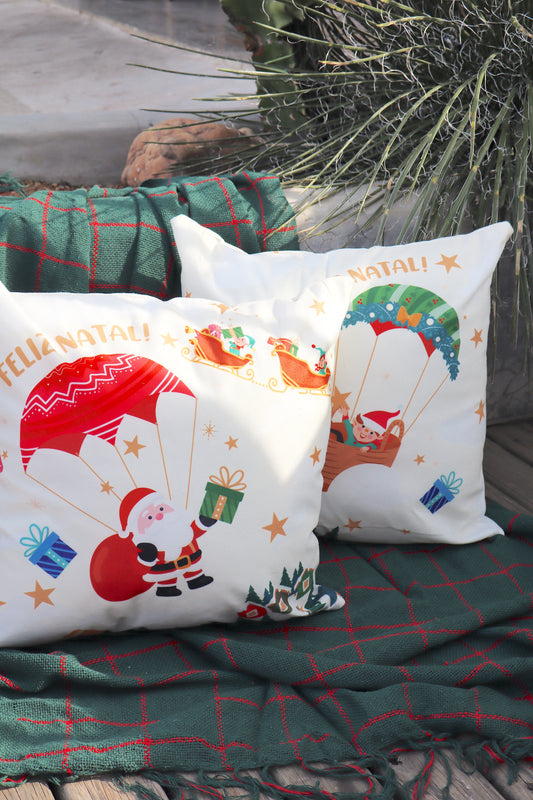 Capa de Almofada Decorativa Dupla Face Feliz Natal Fundo Claro