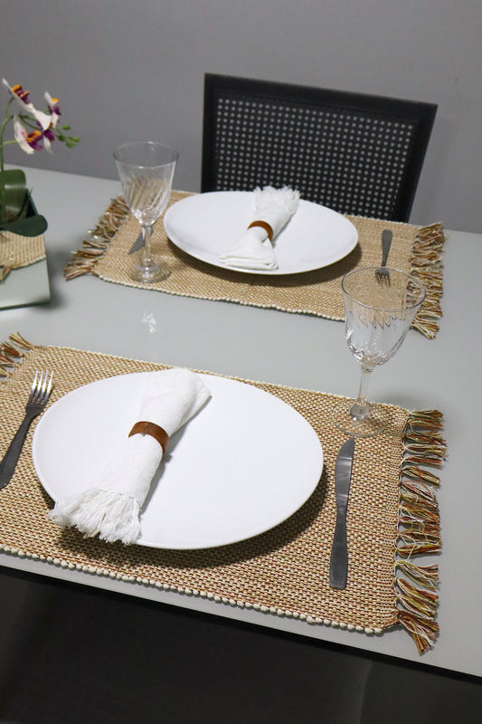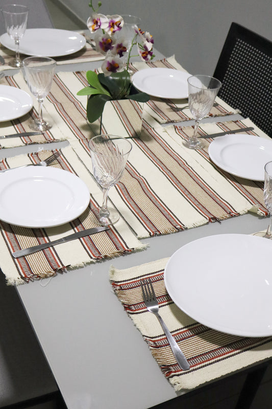 Jogo Americano Comum Cru Listrado Colorido 7 Peças