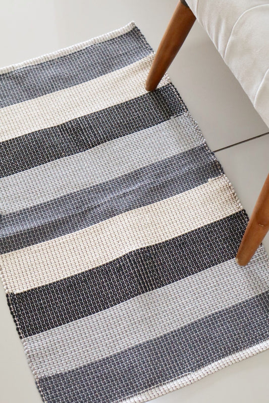 Tapete em Linha Listrado Cinza e Preto 48x78cm