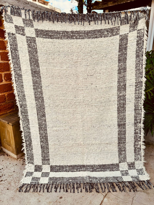 Tapete Itatiaia Listrado Algodão Cru com Preto 1,50x2,00m