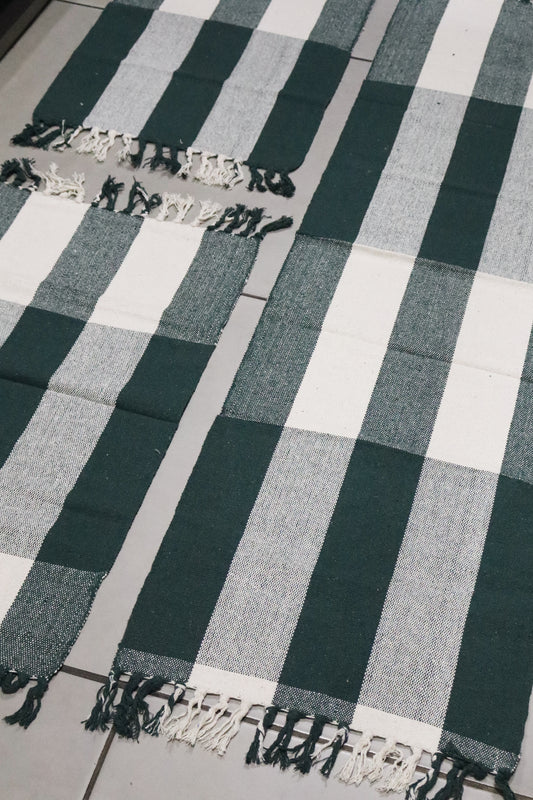 Jogo de Passadeira com 3 Peças em Algodão Comum Verde Xadrez