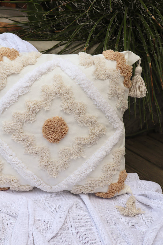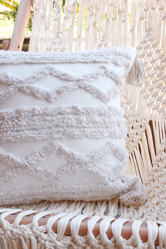 Capa de Almofada Boho Escama com Pompom Lisa Cru 45x45