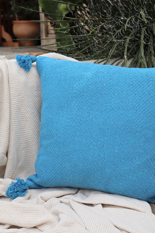 Capa de Almofada Boho Escama com Pompom Lisa Azul Claro 45x45