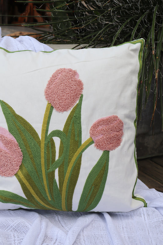 Capa de Almofada Bordada em Linho 45x45 Flores EST05