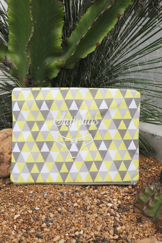 Necessaire Porta Calcinha Limpinha Sujinha G Amarelo e Cinza