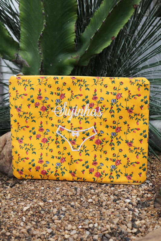 Necessaire Porta Calcinha Limpinha Sujinha G Florzinhas Amarelo