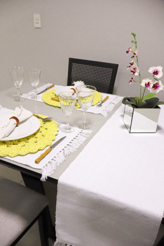 Caminho de Mesa Linha com Fio Lurex Branco 1,5m