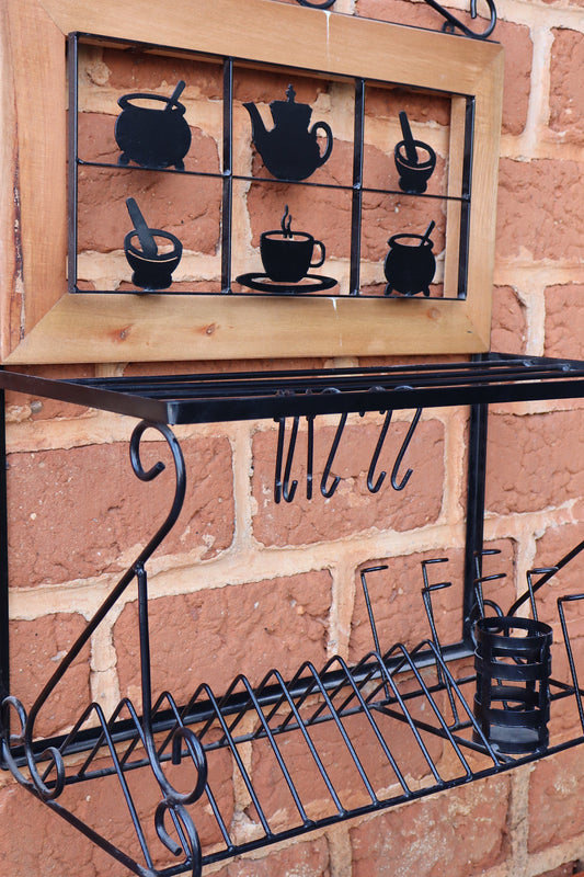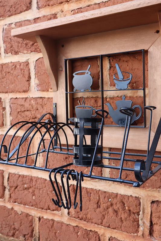Paneleiro Rústico Escorredor Louças De Ferro E Madeira 60 Cm Panelinhas Pretas