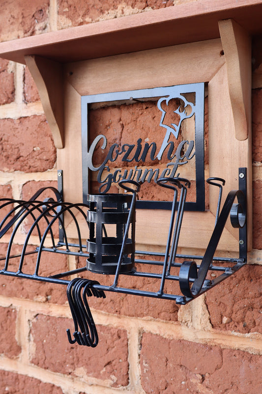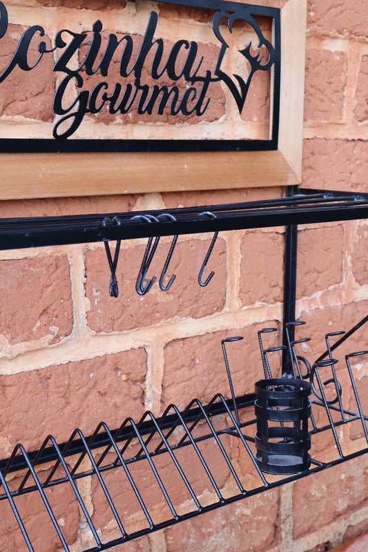 Paneleiro Rustico Ferro Madeira Escorredor Louças 40cm Cozinha Gourmet