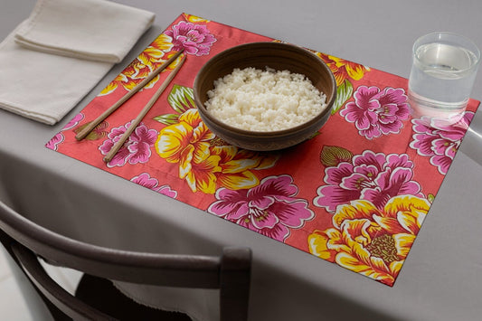 Jogo Americano Dupla Face Chita Rosa Salmão 6 Peças