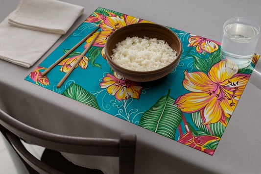 Jogo Americano Dupla Face Chita Tifanny Flor Amarela 6 Peças