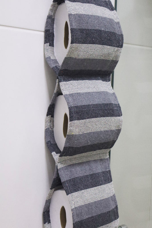 Porta Papel Higiênico 3 Lugares Algodão Listrado Preto