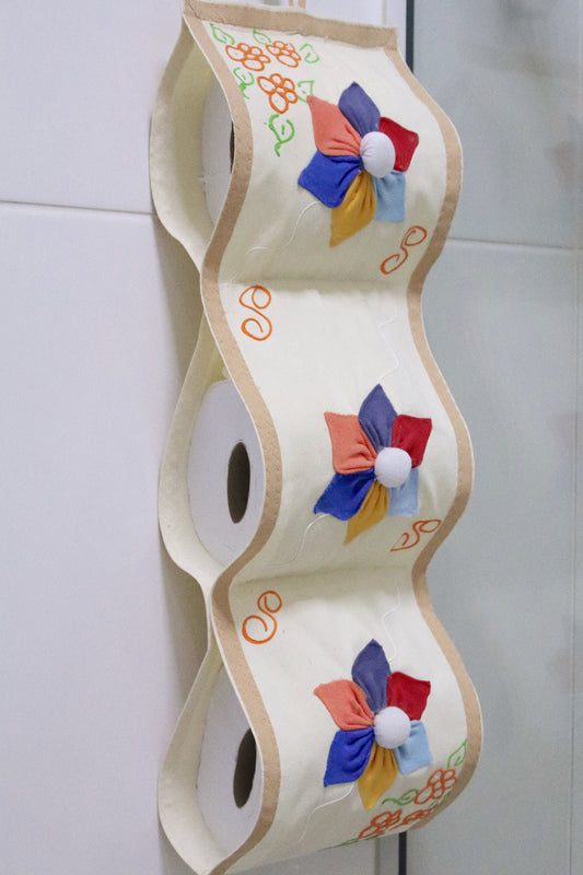 Porta Papel Higiênico 3 Lugares Algodão Fuxico Bege