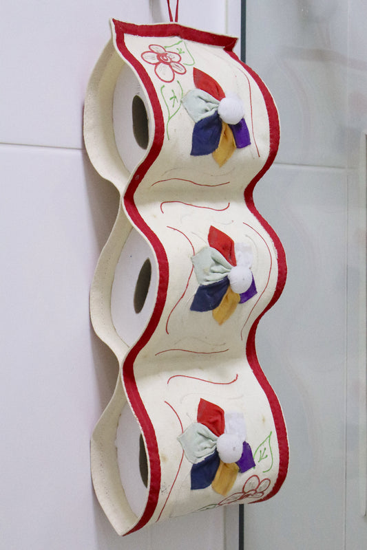 Porta Papel Higiênico 3 Lugares Algodão Fuxico Vermelho