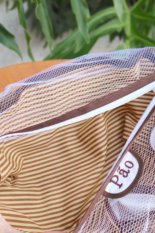 Cesta Porta Pão Bambu com Zíper Listrada Bege e Marrom