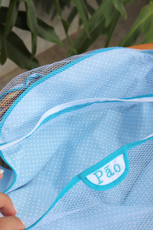 Cesta Porta Pão Bambu com Zíper Poá Azul Claro