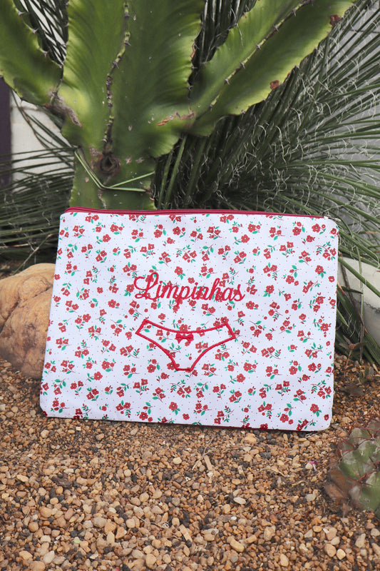 Necessaire Porta Calcinha Limpinha Sujinha G Florzinhas Vermelhas