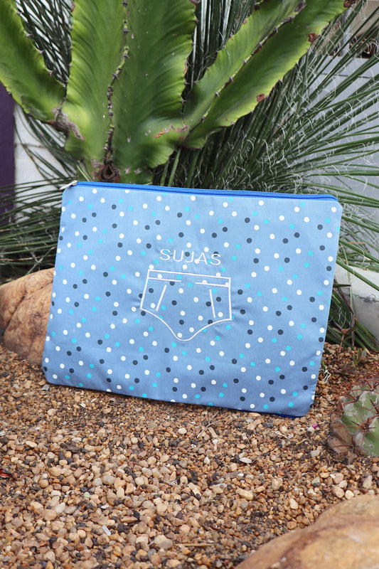 Necessaire Porta Cueca Limpinha Sujinha G Poá Azul