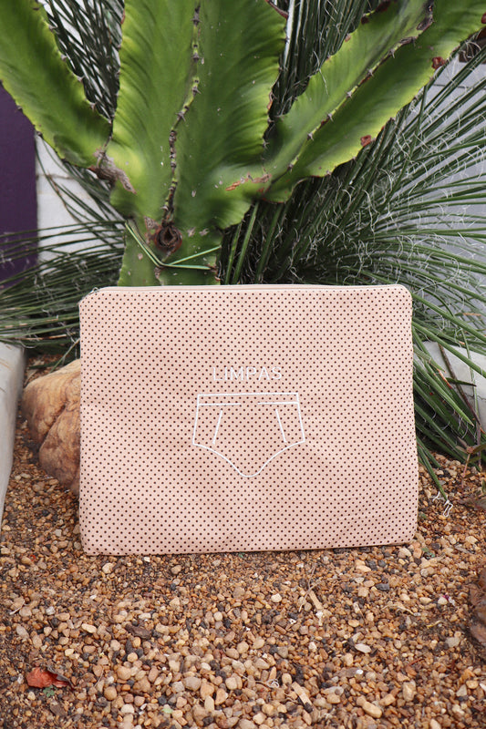 Necessaire Porta Cueca Limpinha Sujinha G Poá Bege e Marrom