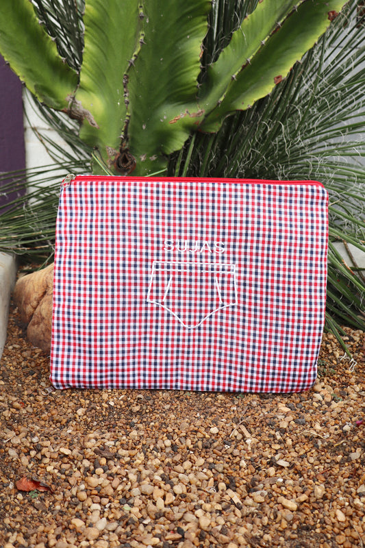 Necessaire Porta Cueca Limpinha Sujinha G Xadrez Vermelho e Azul